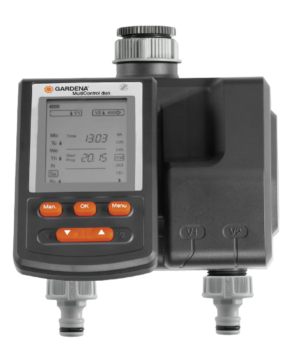 With the GARDENA Water Computer MultiControl duo, you can irrigate two different garden areas. For example, the lawn behind the house and the flower bed in the front. Both outlets can be individually programmed. That means: you individually select the start of watering, duration and frequency. Thanks to intuitive operation and step-by-step display of all irrigation data, this is very easy. With the night programme, irrigation begins automatically when a connected Soil Moisture Sensor detects dryness.
