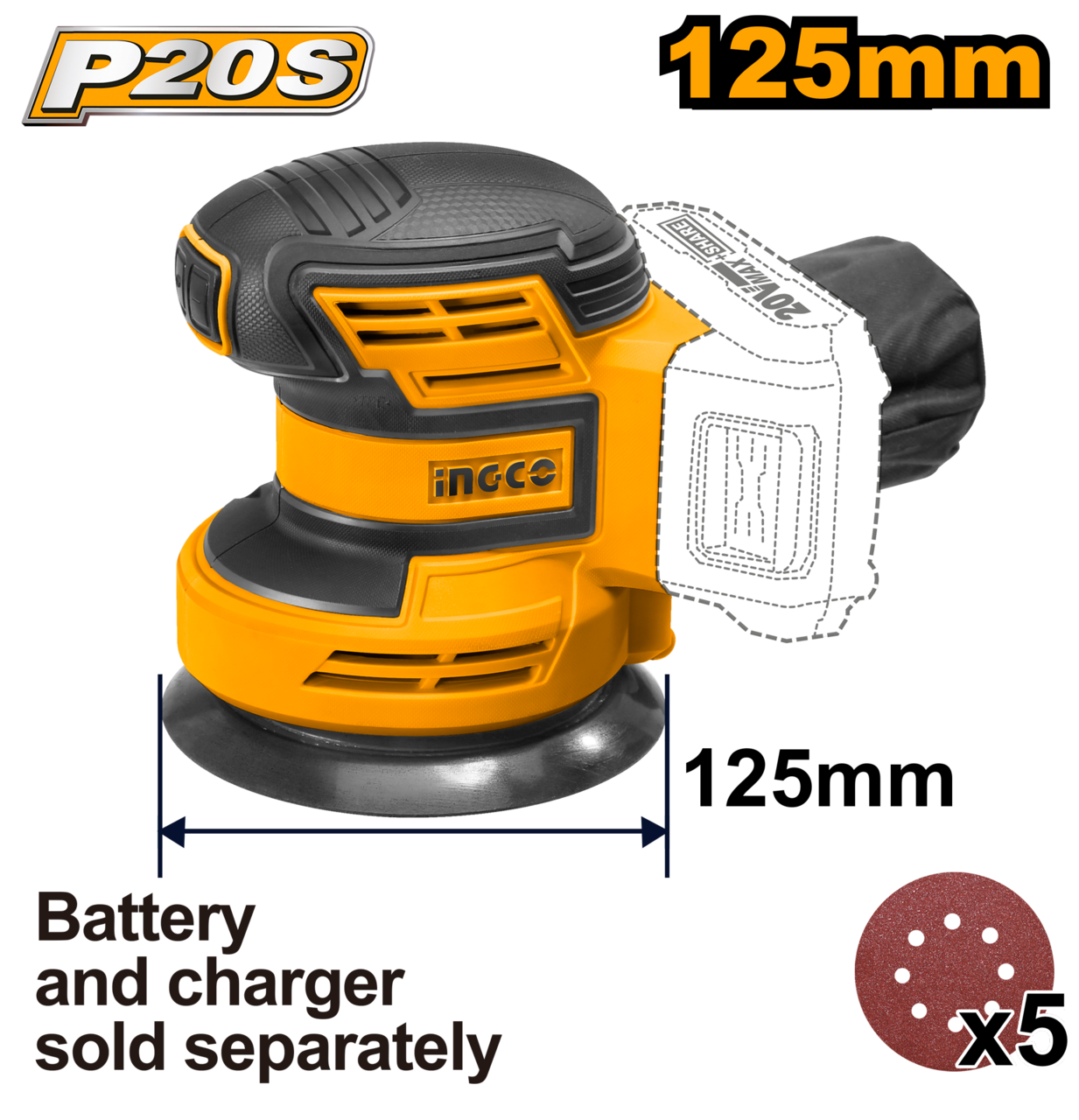 Experience unbeatable quality and performance with the INGCO SANDER CORDLESS 20V PS 125MM.