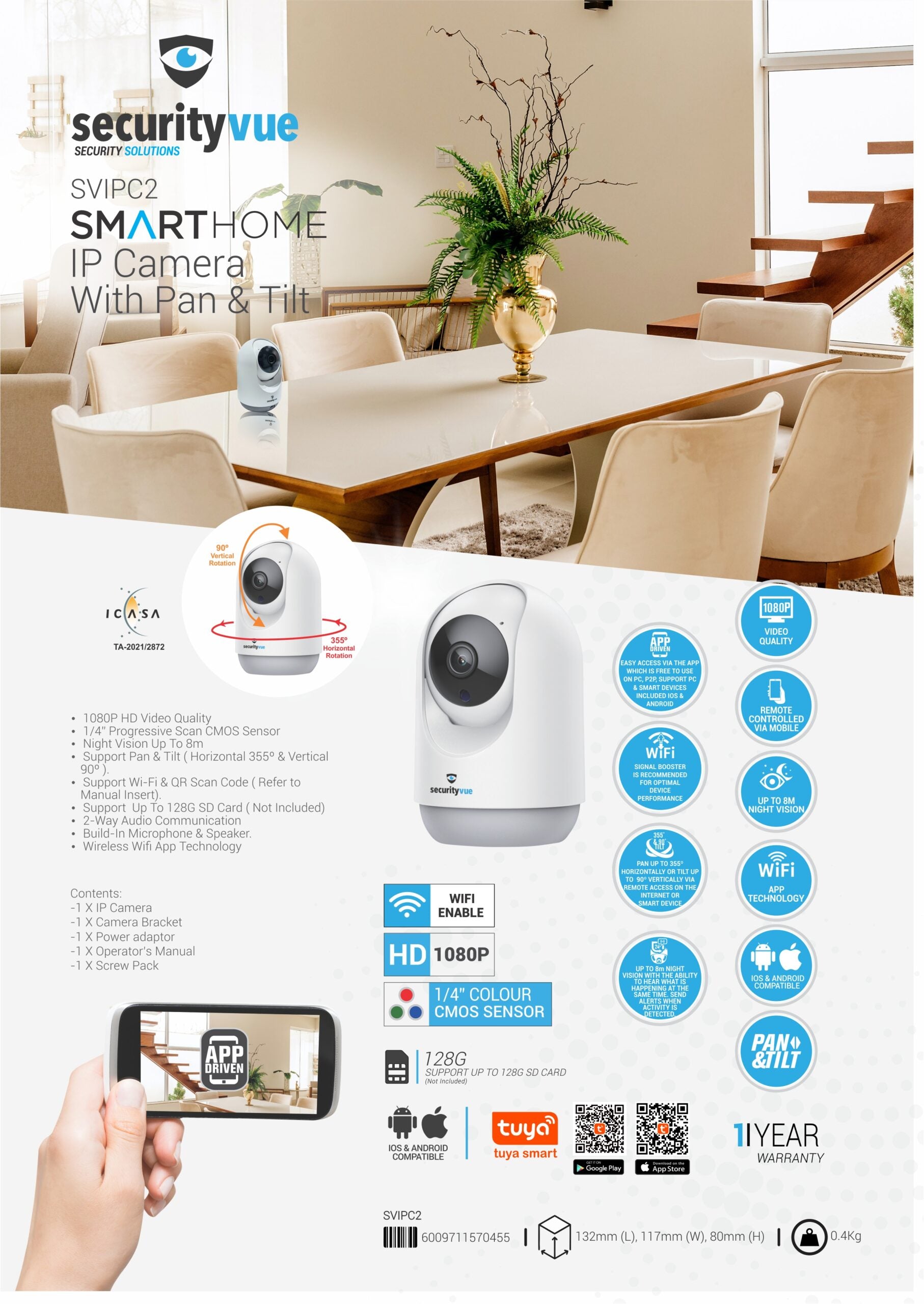 Enhance your home security with the SECURITYVUE SMARTHOME IP CAMERA featuring pan and tilt functionality.